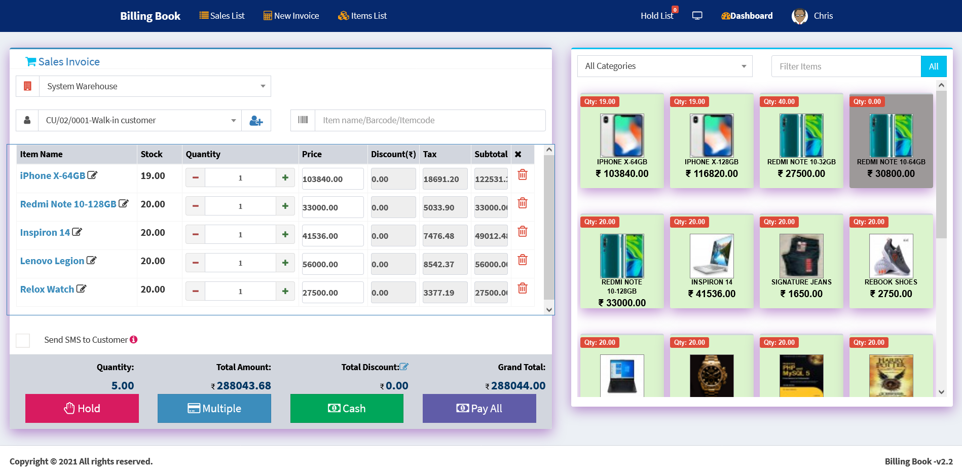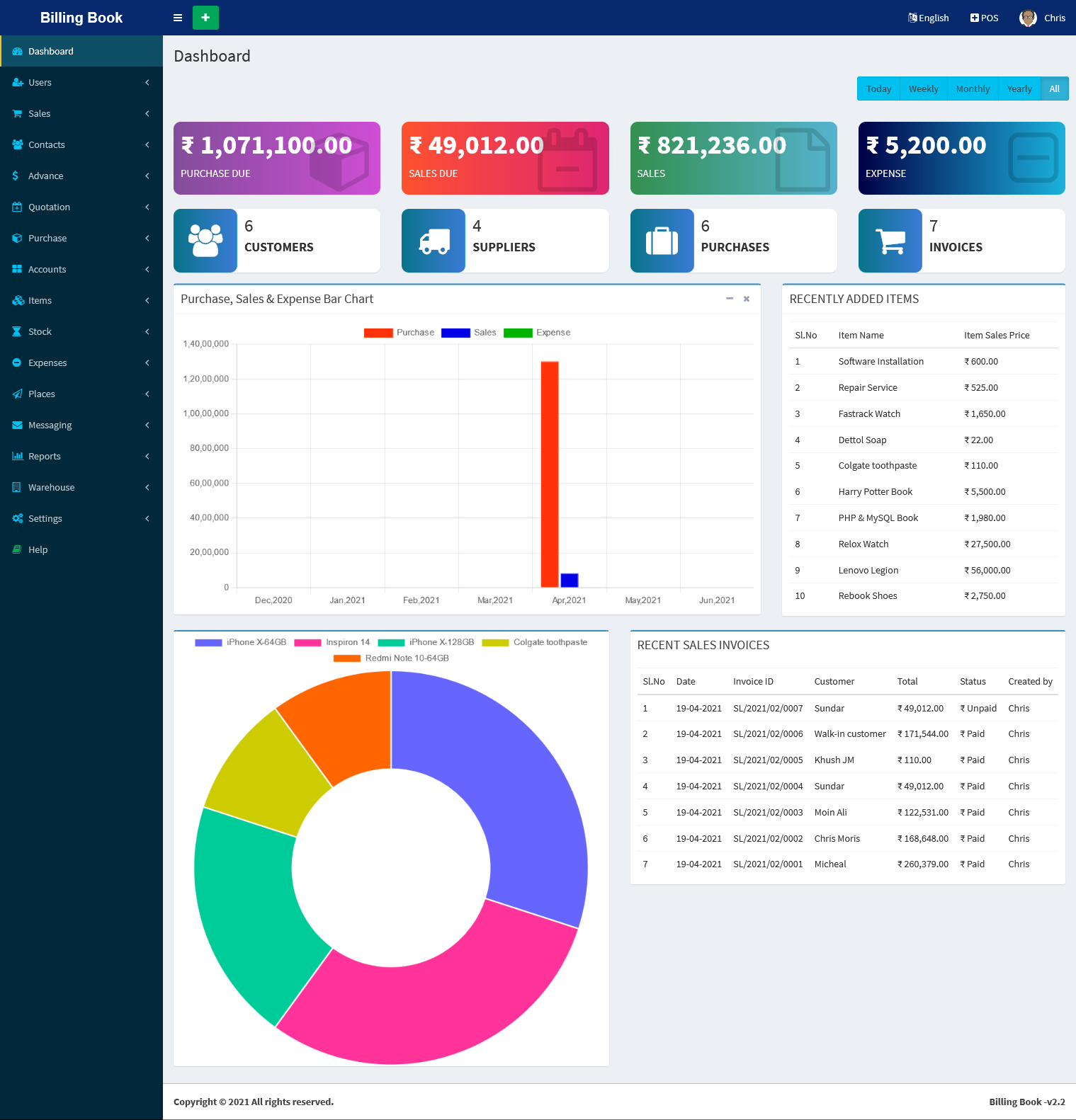 - Profit & Loss Report, Item wise & invoice wise profit Report