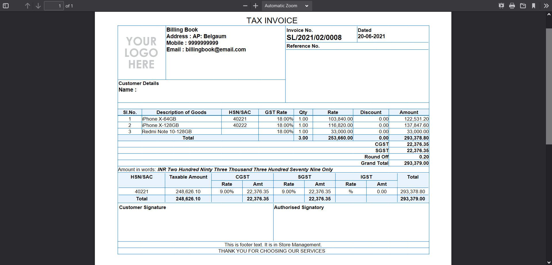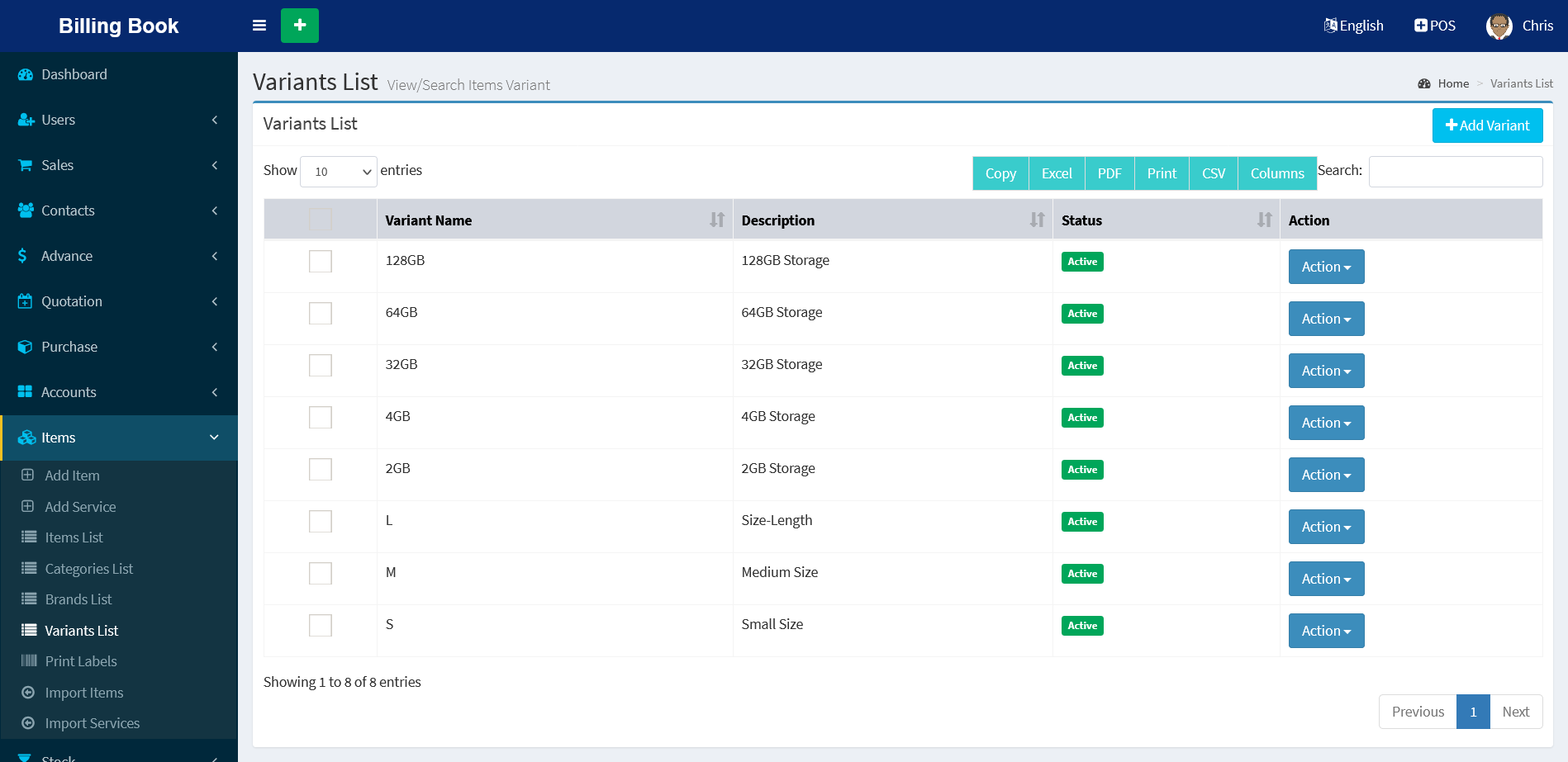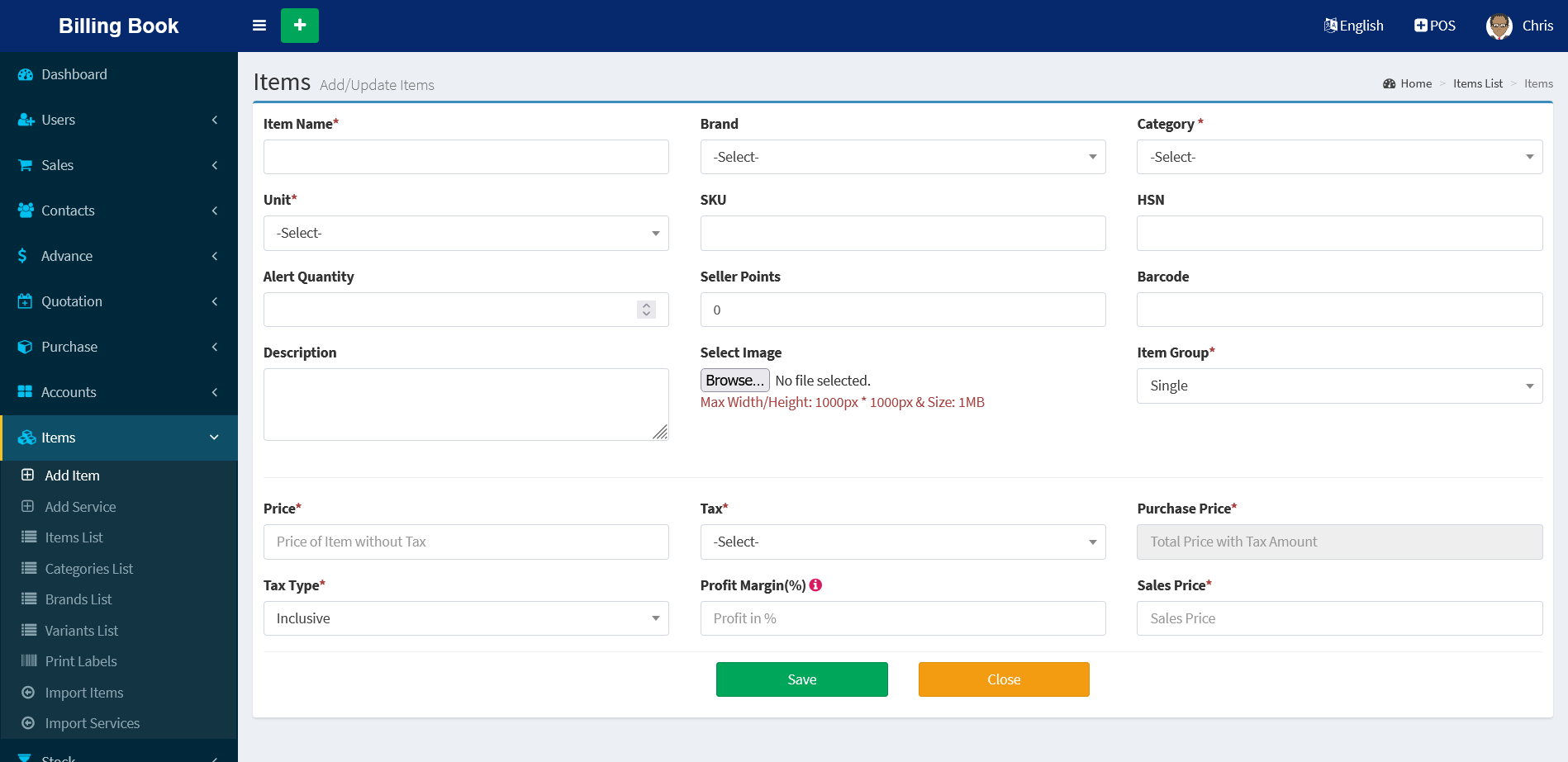 - Items & Service Management & Import [CSV] feature