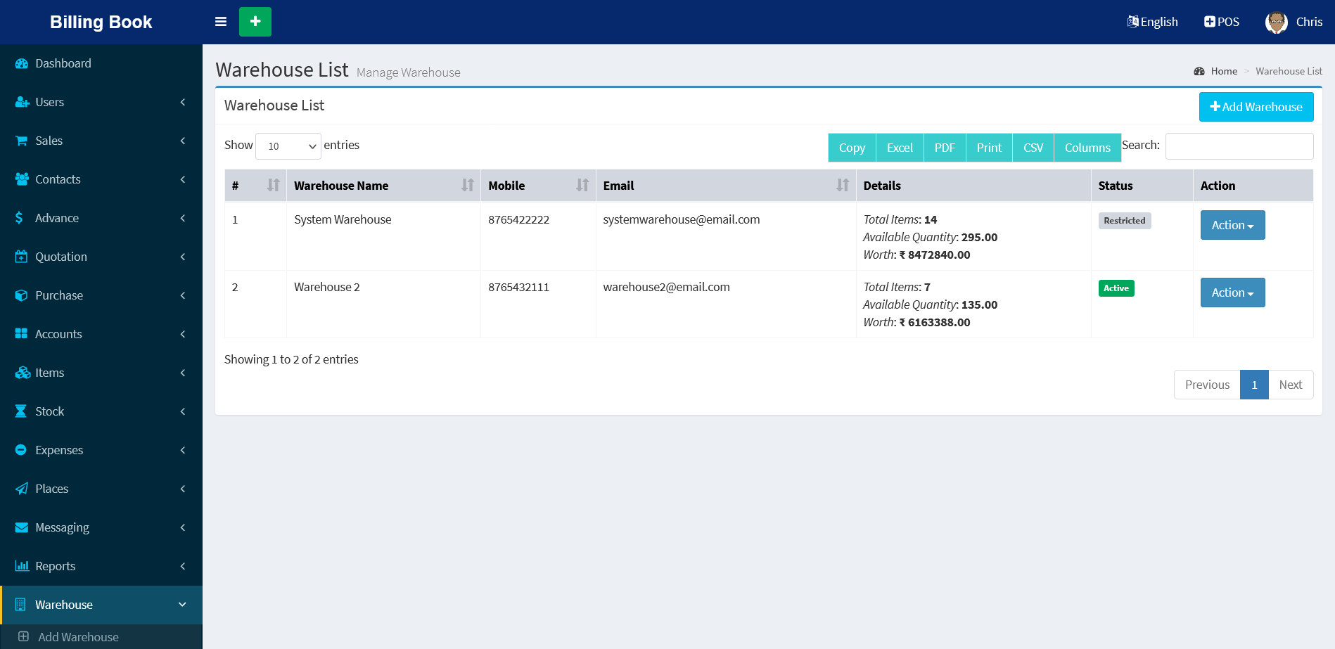 - Users & Users Role Management & able to assign warehouse to user