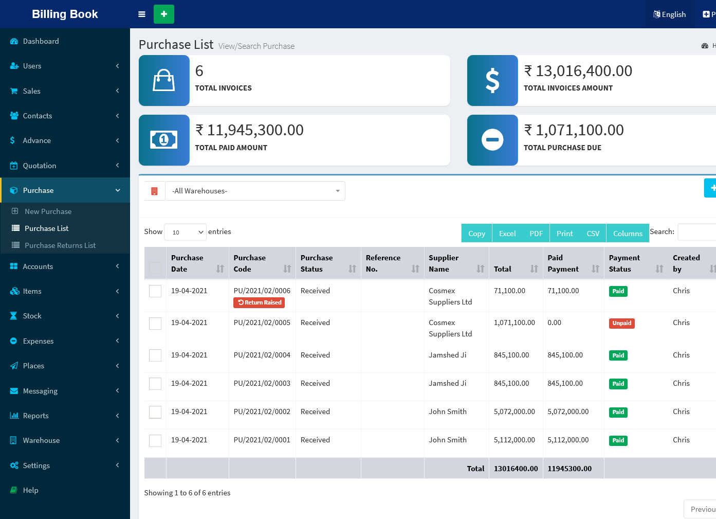 - Purchase Payments Report