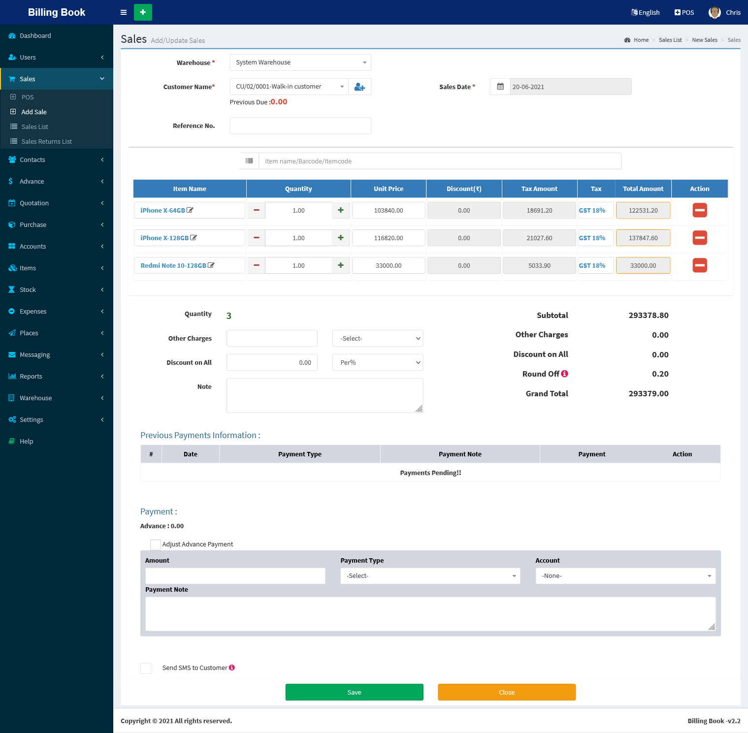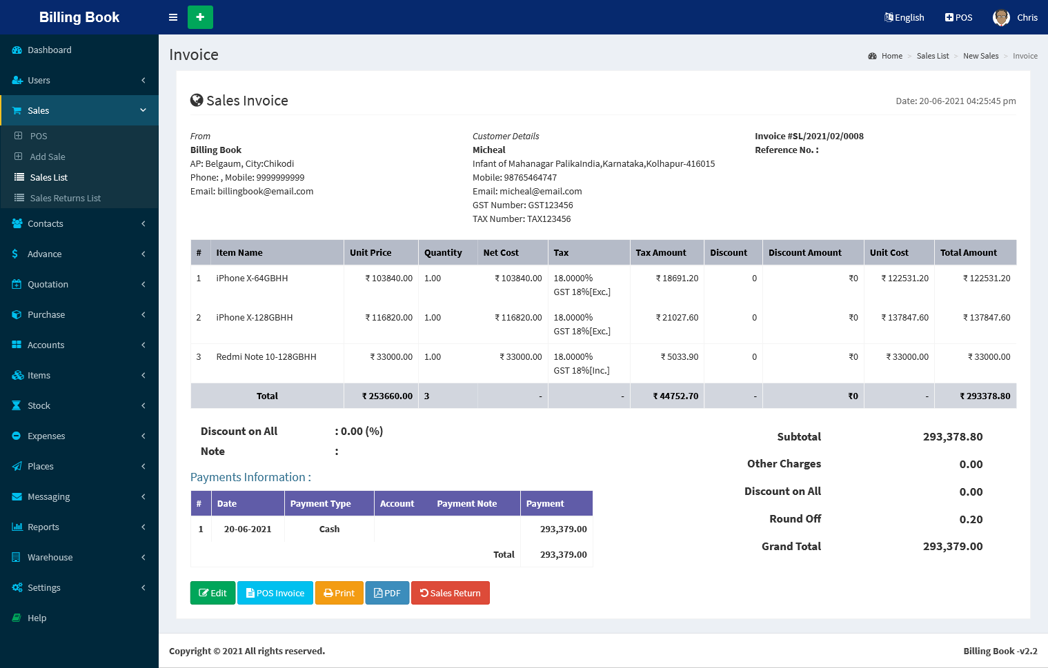 - Sales & Purchase Return Invoice & Payments Management
